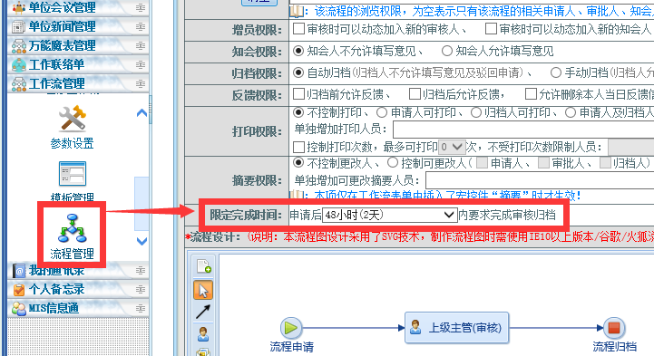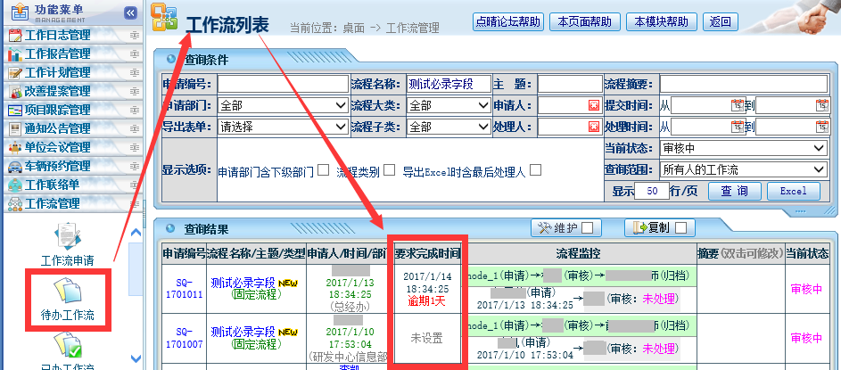 工作流增加了一个要求完成时间字段,各个不同的流程可以事先设置不同的要求完成时间,方便使用单位控制审核绩效