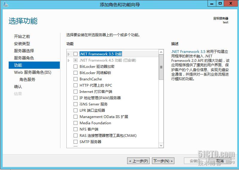 ![]() ![]() ![]() ![]() 本步骤为最核心步骤,必须严格按照以上项目勾选,切勿遗漏任何一个,否则系统运行铁定出错!!! 好多,在上边找到并选中 ASP、ASP.NET 3.5、ASP.NET 4.5、IIS6元数据库兼容性等所有需要勾选的项目,然后点击“下一步”: