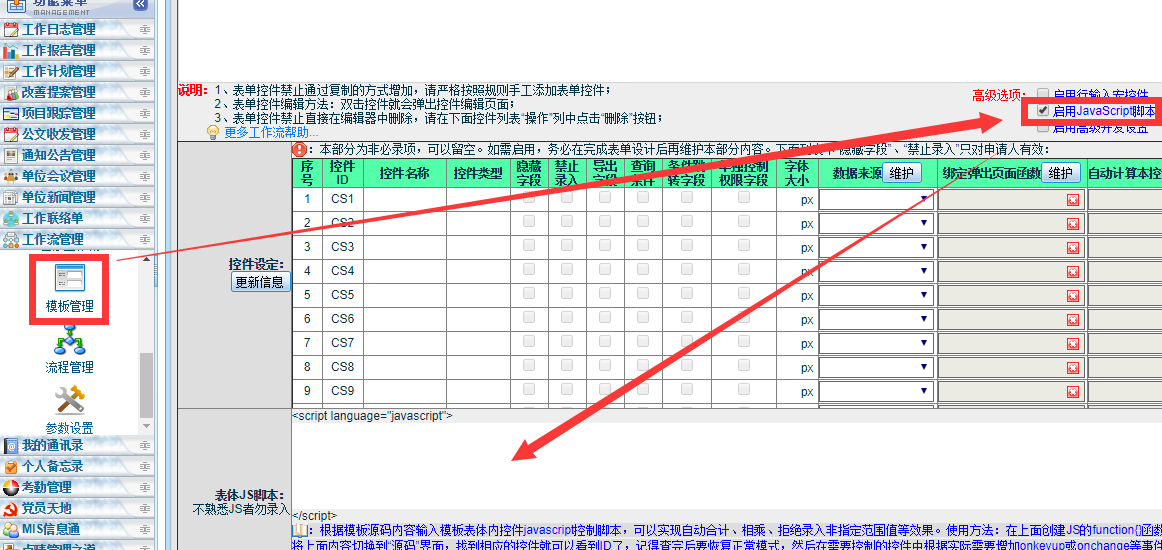 进入工作流管理模块的模板管理中,在新增模板或编辑模板中,就会看到: