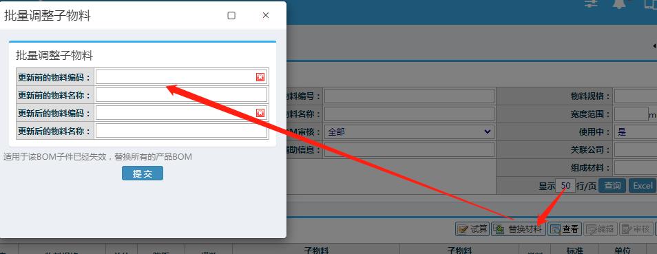 点晴模切ERP工程BOM子物料批量替换操作