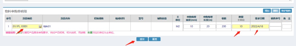 :点晴ERP-申购单管理-功能操作流程![]() 1. 在”采购管理-->申购单管理-->新增申购单”(如图1),在本页面填写好相关信息,点击”提交”即可.(如图2)