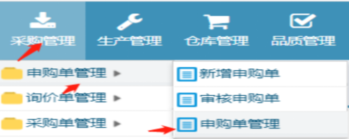 2. 如果没有设定审核的话,在”采购管理-->申购单管理-->申购单管理”