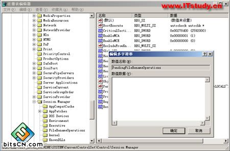 3、删除其中的“PendingFileRenameOperations”键值(这个键值是安装程序暂挂项目,只要找到对应的应用程序清除掉就行了),关闭注册表编辑器。重新安装SQL Server 2000即可。