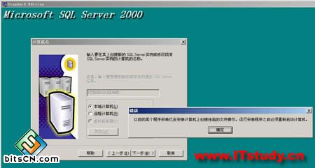 原因分析:造成这个问题的主要原因是在以前安装SQL Server 2000或者其他软件的安装也可能会造成(不过主要是微软的软件)的过程中,中断了安装过程,于是就在系统中保留了安装信息,造成无法继续安装的问题。