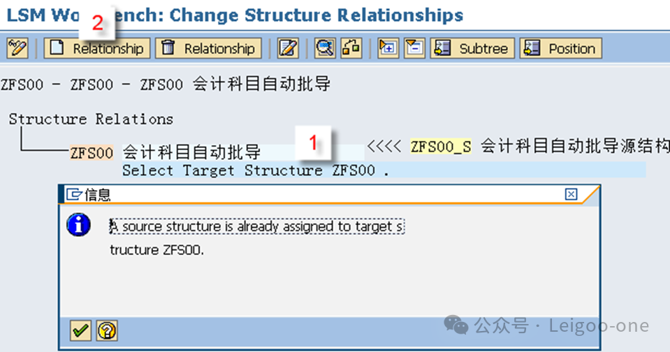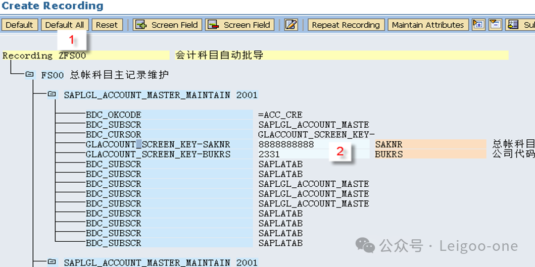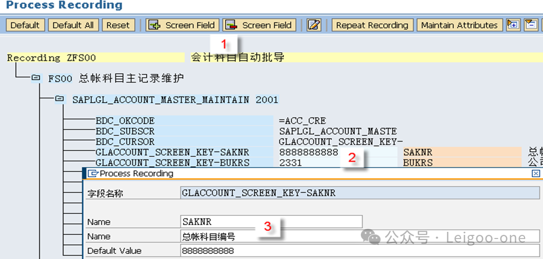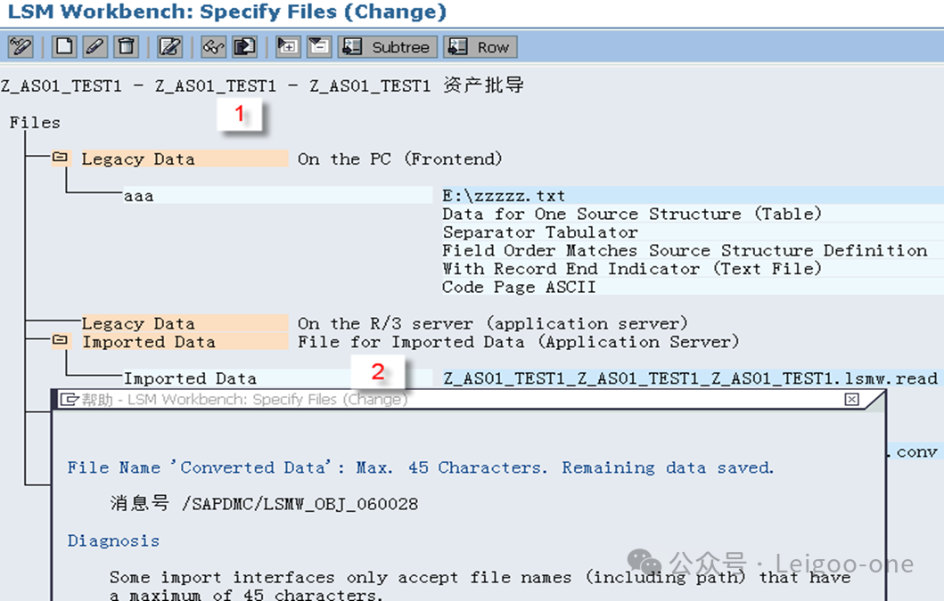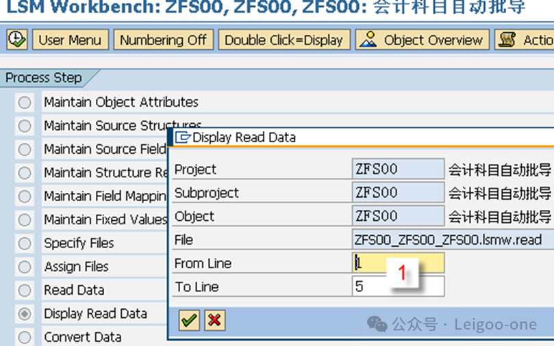 (1)CATT:Computer Aided Test Too (计算机辅助输入测试) (2)BDC:Batch Data Communication(批处理) (3)LSMW:legacy system Migration workbench(遗产系统迁移工作台) 对于一个新人,LSMW 的困难主要在于: 1、对LSMW本身的认识和理解 2、业务操作面的困难。 这个是在录屏的过程中使用具体的TCODE去进行实际业务处理的录屏过程方面的困难。 首先,有些事务码录屏时的界面和我们平时使用的界面并不完全一致,这就要求对前台的业务处理比较熟悉; 其次,录屏过程中可能会有很多的无关字段,甚至因为无关操作触发的更多无关的东西,如果对这些不够熟悉,则会在录屏结果中看到凌乱复杂的字段信息。 也就是说,在录屏前,你要基本保证自己对业务处理过程足够熟悉,且要精简,不要有过多无关操作,最后一定要触发保存;也就是说,你录屏时操作的一条数据,它本身应该是已经完成且保存了。另外,一个教训是,录屏时尽量选择直接手动输入录屏,避免复制,指SAP的复制功能,不是Ctrl+C/V,因为可能会丢失一些字段导致录屏失败。 以建立会计科目(Tcode:FS00)为例。执行事务代码:LSMW,如下图: ![]() 点击创建,输入project项目编码和描述;或者选择已有的项目,在已有项目下面创建。选择或者创建对应的子项目Subproject。创建项目包Object。 输入Project、Subproject和Object后,点“执行”按钮或回车,进入LSMW操作界面,可以看到LSMW共有14个单独步骤,从Maintain Object Attributes->Run Batch Input Session,如下图。接下来,按菜单操作就可以了。 ![]() 注:Project/Subproject/Object取名不能太长,否则在第7步”Specify Files”可能出现文件长度错误。 1、 Maintain Object Attributes第一步的主要任务实际上是创建录屏Recording。 ![]() 如上图,首先选择“Display<->Change”进入修改状态,再选择“Batch Input Recording”, 一定要在该字段填入Recording名,由于该Recording可能还并不存在,因此,需要选择上图的[1]的标志;或者,点击菜单go to--recordings,如图: ![]() go to recording后显示如下: ![]() 选择新建按钮,Recording输入“ZFS00“,确定后输入Tcode:FS00,开始录屏。 注:Recording输入的“ZFS00“就是Tcode:SM35显示的会话名称,在第13步”Create Batch Input Session”将产生这个会话。 ![]() 录屏结束后,如下图,系统自动列出操作所有操作屏幕和数据字段。 ![]() 双击数据字段,如科目,输入字段名称SAKNR(保持和SAP屏幕字段一致,也可叫KJKM)和数据字段描述。为批导涉及的所有字段都建立好字段名称和字段描述。 ![]() 注: (1)可以点”Default All”按钮取所有字段的默认值。 2、 Maintain Source Structures建立一个源结构。 ![]() 定义我们自己要以TXT文件提供的数据源的格式的名称,注意是数据源的名称,相当于一个结构的名称,不是文件名也不是字段名。接下来将为该结构建立批导字段。 3、 Maintain Source Fields定义数据源里面各个字段的名称和文本、长度等信息,相当于确定结构里的各个字段。 ![]() 如上图,按图-[1]的”新建”按钮,出现图-[2],填入字段名称、描述、长度和字段类型,假设批导需要上图-[3]的这些字段,则批导的Excel(最后可存为制表符为分割符的Txt文本)数据内容必须按这些字段的顺序组织,如果字段不对,可以使用上图-[4]的两个按钮调整顺序。 强调:最好保持Source Fields的顺序、录屏字段变量顺序和批导数据文件字段的先后顺序完全一致。 注:创建”Source Fields”,如果选上Selection Parameter for “imput/ConvertData”标志,表示该字段允许从批导文件上载时可根据该字段进行刷选。 一个批导excel数据组织示范图,可以看到和Source fields是按顺序一一对应的。 ![]() 上面的excel前2行为注释行,在第7步“Read Data”中可指定数据行从第3行开始,假设本例从第3行开始到第7行,共有5条数据记录行。 此步中,选择下图-[1]的”Table Maintenance”按钮,可看到如下图-[2]的集中维护方式。 ![]() 小技巧: 这里的字段长度必须大于实际表字段的长度,数据类型和长度最好匹配,要知道一个将批导字段的数据类型和长度,可以采用下面的3个步骤: (1)在操作屏幕对着该字段按”F1”帮助键,然后选择下图-[1]的。 ![]() (2)比如FS00操作界面的总账科目字段,可以看到它的字段名称叫SAKNR。 ![]() (3)双击字段名可以知道SAKNR的数据类型为10位的字符型。 ![]() 4、 Maintain Structure Relations定义录屏时产生的结构与我们在2和3自己定义的结构在结构名层级的对应关系,不涉及字段的对应关系,因为5才是字段的对应关系,相当于是SAP把结构名称和里面的字段分开来处理对应关系了。 ![]() 通常的数据迁移实例不应复杂,本例中,由于batch input recording只有1个,所以Source structure已自动默认分配。 5、 Maintain Field Mapping and Conversion Rules定义字段层面的对应关系。 首先,选择下图-[1]的“Source Field”,将批导字段变量和源结构的源字段关联上, 然后选择下图-[2]的”Rule”, 维护字段映射和转换规则,比如可以设置公司代码为有常数(Constant),如果公司代码固定,其实也可以直接在excel都输入固定公司代码。 ![]() Rule一般选择“Transfer(Move)”,表示字段到字段的移动,如下图。 ![]() 这步非常重要!!实际上这步是将录屏ZFS00时的数据字段和源结构做映射,由于源结构在第7步”Specify Files”中将关联上一外部批导数据组织文本文件,也就是说,数据组织文件的内容(字段)将和第3步“Maintain Source Fields”源结构的源字段关联,通过本步骤的映射,即批导录屏字段和外部组织文件的字段关联上了