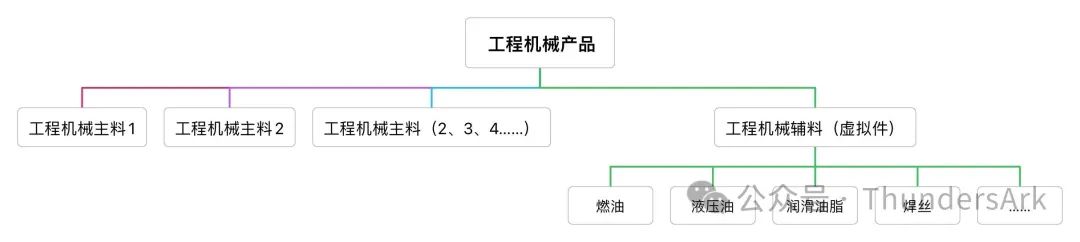 试想一下,如果一个工程机械产品的辅料多达上百种,每次维护一种新产品的时候都要重复地为其BOM物料清单维护相同的辅料物料,繁琐复杂,且很难直观地看清楚该产品的产品结构。