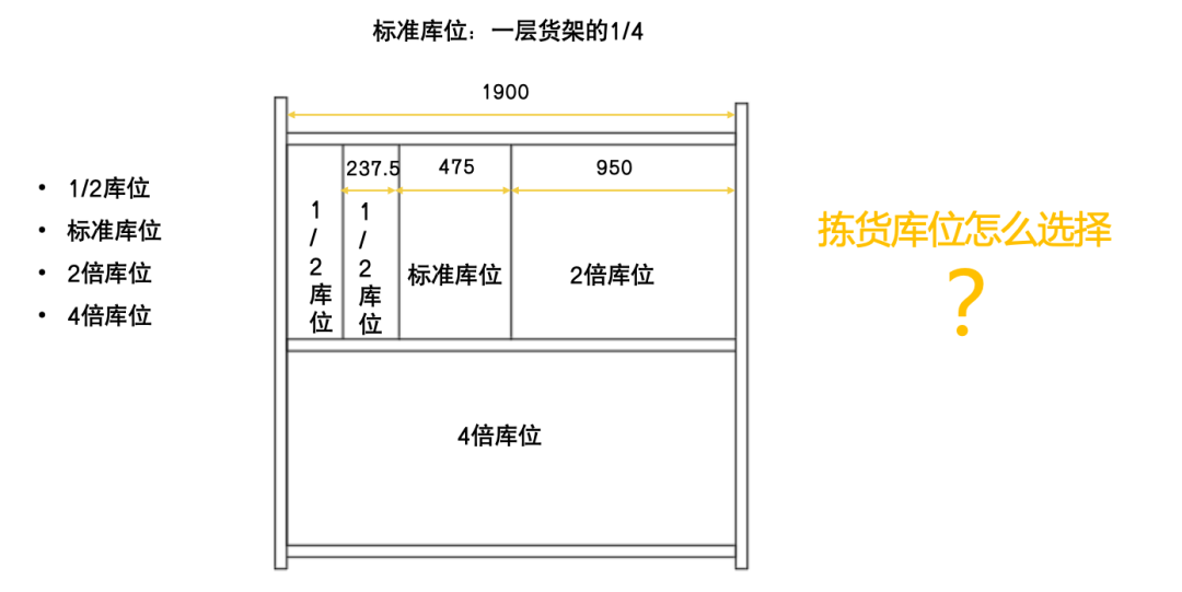 库位设计过程中,有一个误区,就是很多仓库会把库位大小设置成大小一样的,这样的思路很明显是不对的,正确的思路是根据上面4个库位设置因素来最终确定库位大小。