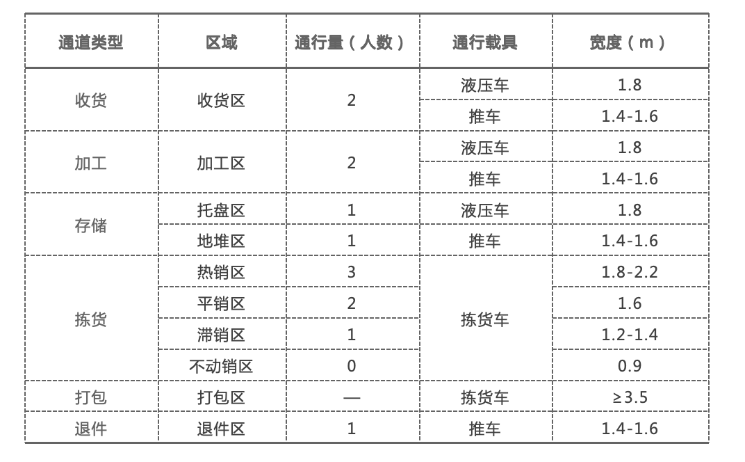 这里需要特别提醒仓库管理者在设计通道的时候,尤其要注意拣货通道的设计朝向,经过数据测算,拣货通道垂直于打包区为最佳通道朝向。