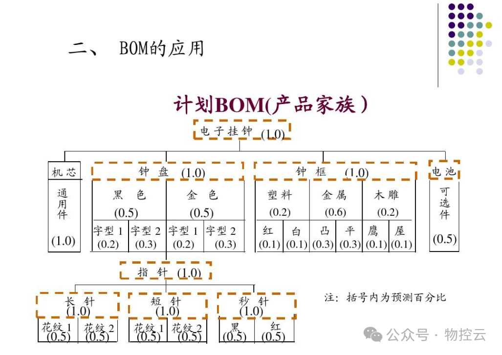 什么是BOM? BOM是物料清单的缩写,也称为产品结构表或产品结构树。 BOM的作用主要是通过计算机辅助企业生产管理,使计算机能够识别企业所制造的产品构成和所有要涉及的物料。在制造业中,BOM是一份详细记录制造某个产品时所需所有原材料、零部件、元器件等物品的清单,这个清单通常包括每个物品的名称、数量、规格、型号、品牌、材质、用途等信息,它是将产品设计转化为实际制造的基础之一。此外,BOM还广泛应用于项目管理、零售业等领域,用于掌握、计算和规划成本以及供应链等信息。