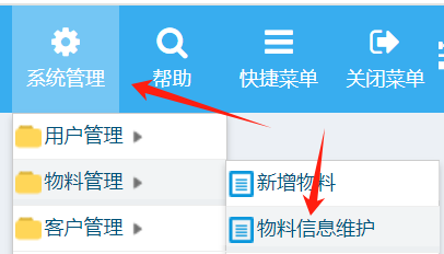 操作步骤: 系统管理-物料管理-物料信息维护