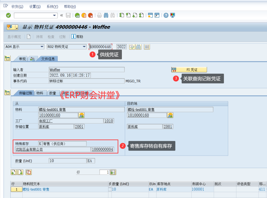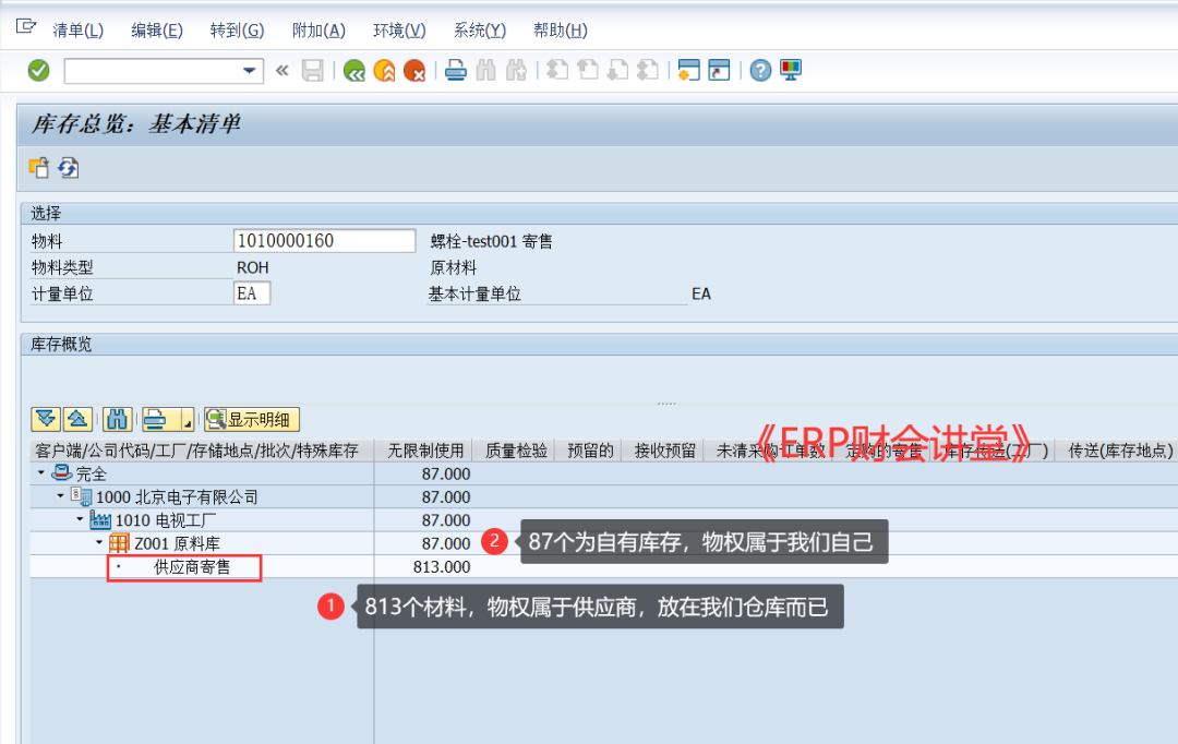 或者MB52查看库存: ![]() 第三步,供线消耗。一般情况下,将供应商寄售库存供应到线边,完成物权转换,此时系统生成对供应商的结算数据。