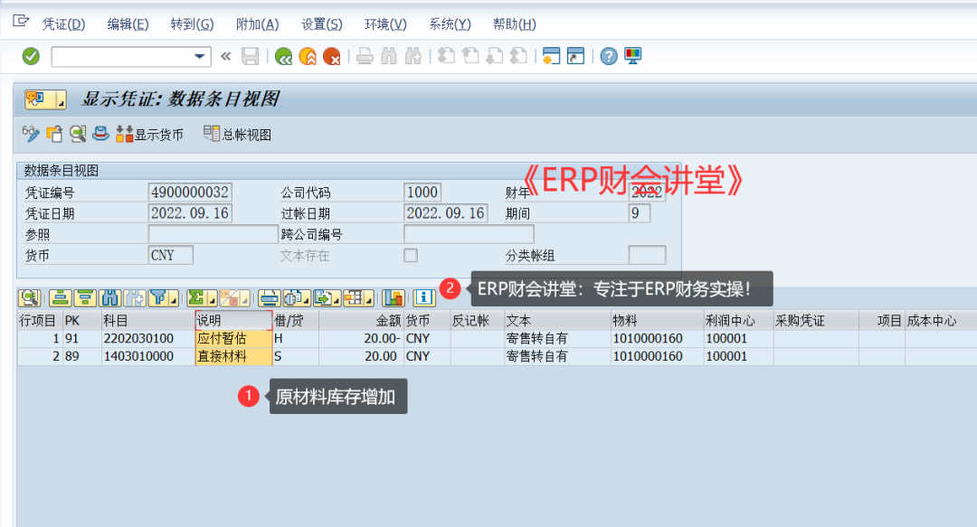 上图为寄售转自有的物料凭证,点击“FI凭证”可以看到对应的记账凭证。