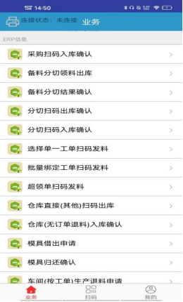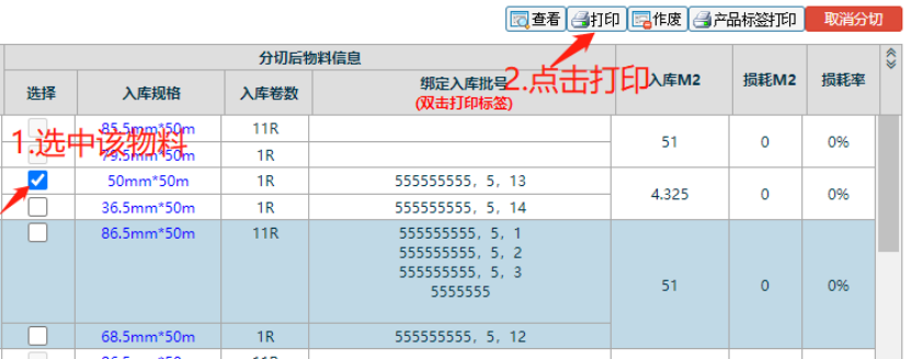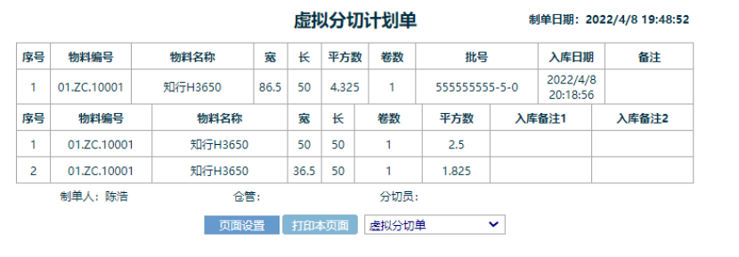 从打印出生产工单的信息去仓库领料,若需要分切则需要先分切 1. 首先从手机端或手持终端上打开点晴业务通.如图所示: 2. 点击”备料分切领料出库”,进入该界面(如图1),对物料上的标签(如图2)进行扫码,扫码过后会出现相应的信息,操作人确认信息无误后点击”确认出库”. ![]() 图:1 图:2 补充说明:经过上一步操作后,在网页版的ERP系统就会出现相对应的物料信息,但此时的物料信息还没有分切. 3. 点击”备料分切结果确认”,进入该界面(如图1),再次对物料上的标签(如图2)进行扫码,扫码过后对该物料进行分切操作,操作人确认分切信息无误后点击”分切确认”. ![]() 图:1 图:2 补充说明:物料分切确认后,可在网页版的ERP系统进行查看该物料的分切情况. 4. 在谷歌浏览器上登录ERP系统,在”仓库管理-->物料分切管理-->分切通知单管理”进行查看分切好的物料信息.如下图所示: ![]() 图:1 图:2 5. 然后勾选上分切好的物料,进行标签打印,把打印好的标签重新贴上分切好的物料上. 补充说明:可在本页面中选中该物料后,点击打印,可对该物料的分切信息进行打印.如图1所示: 图:1 点击”打印”然后会进入这样页面(可进行打印操作),如图所示: ![]() 图:2 点晴模切ERP更多信息:https://moqie.clicksun.cn,联系电话:4001861886 该文章在 2025/9/25 14:59:04 编辑过 |
