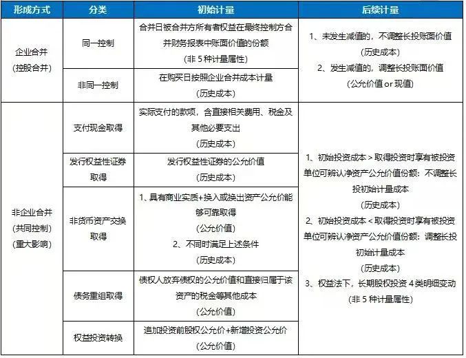 最后一个原因是,原理是“纠错雷达”。合并数编制不平、不准的时候,懂原理的人会像侦探一样排查:1、检查内部债权债务抵消是否漏掉税会差异(比如坏账准备递延税);2、验证少数股东损益计算是否考虑逆流交易影响;3、确认合并范围变更时点是否影响期初数等等。快速准确定位问题并解决掉问题。 铺垫了这么多,你可能已经明白原理掌握的重要性,尤其是对既难学又极具价值的“企业合并&合并财务报表”! 好的,接下来步入正题: 原理一:长期股权投资的计量属性多样性 ![]() 表格附注如下: 1、“权益投资转换”的初始计量同样适用于“企业合并”; 2、本表基于个别报表,不涉及合并报表; 3、成本法与权益法仅是长期股权投资持有期间的会计核算方法,是持有期间对长期股权投资的再确认,不是长期股权投资后续计量的会计计量属性。 详细内容,点击跳转长期股权投资 | 计量属性判断。 原理二:合并范围穿透,以控制权为判断基础 母公司编制合并财务报表,以控制权为基础将子公司纳入合并范围,在合并范围内体现一体化运营。 因此,合并报表中应将子公司所有的资产、负债、损益纳入。 既然如此,那么从外部购买子公司(非同一控制下企业合并),就是购买一组打包的资产负债组合,按公允价值入账;那么从集团内部间划转子公司(同一控制下企业合并),就是资源的内部重新配置,不产生损益和净资产总额变动。