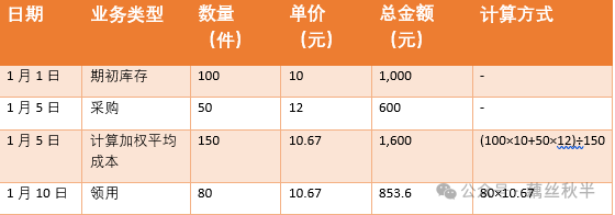 二、月末一次加权平均法 📌概念 月末一次加权平均法是按月计算存货单位成本,即月底统一计算当月存货的加权平均单价,然后用于计算当月的出库成本。 📌计算公式 加权平均单价(当月)=(期初库存总金额+本月采购总金额)÷(期初库存数量+本月采购数量) 📌适用场景 ✅适用于采购批次较少、价格波动较大的企业,如重工业、设备制造等行业。 📌举个栗子 ![]() 📌特点: