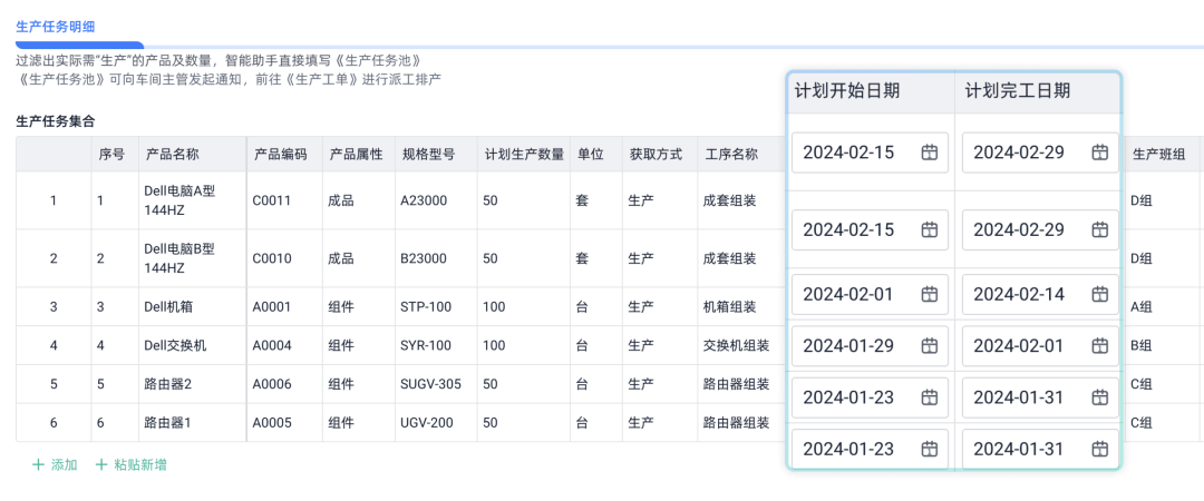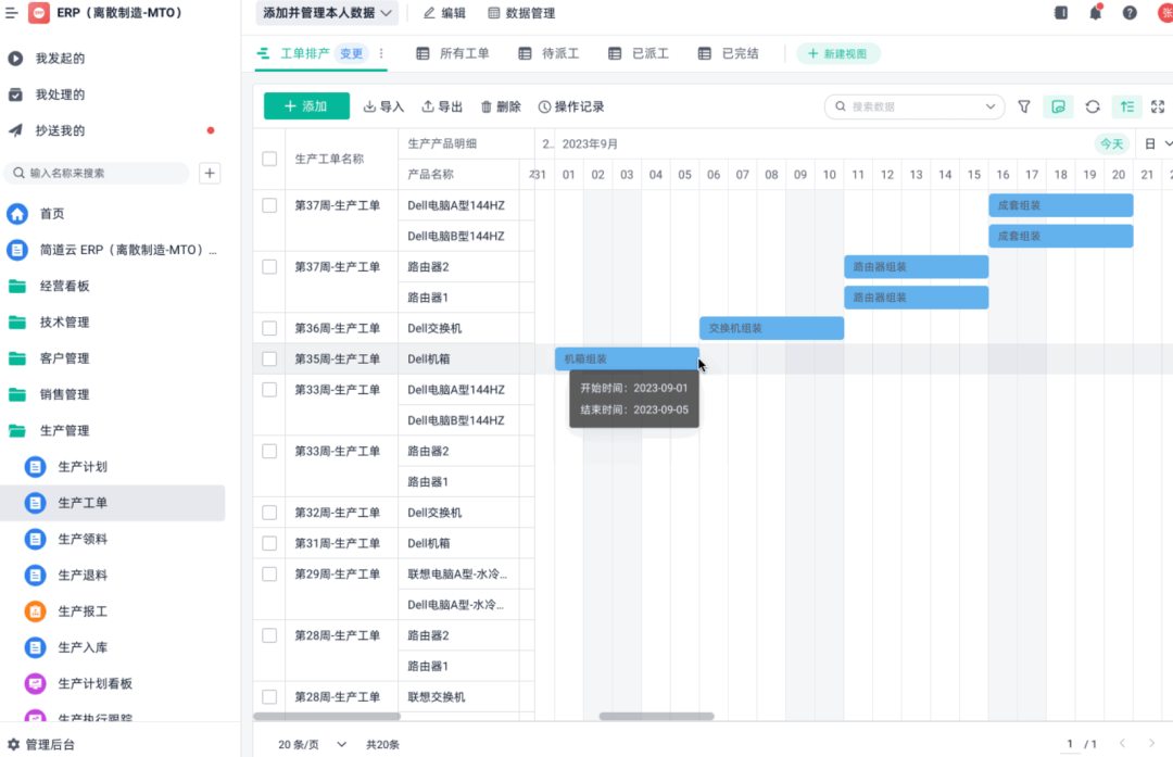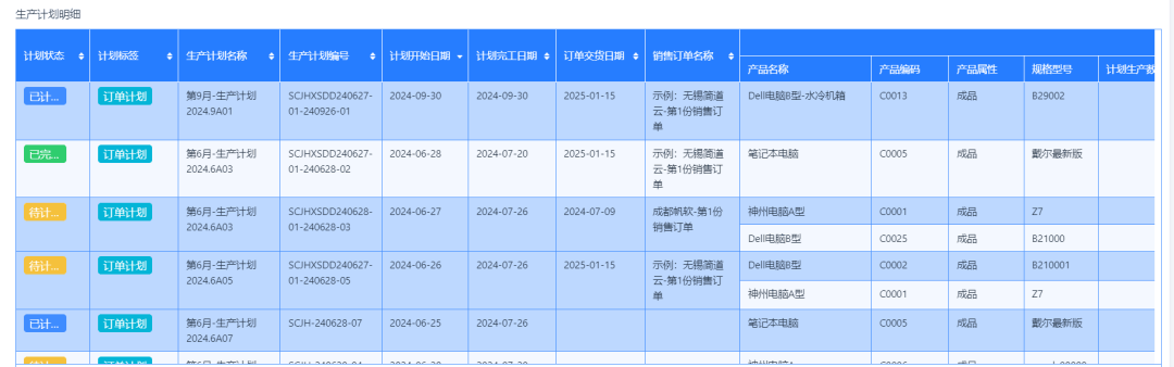 ![]() 3. 精准的生产排程与物料准备 利用ERP系统的多级BOM,生产排程可以更精准地安排。 通过实时监控生产进度和物料到货情况,ERP系统能够帮助生产部门灵活调整生产计划,确保每个环节的生产和物料供应都能够无缝衔接。 操作方法: