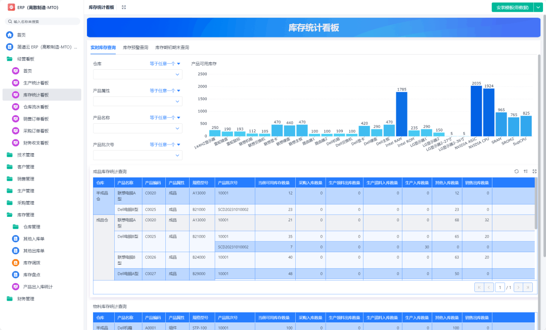 ![]() 4. 实时监控库存,避免库存积压 多级BOM能够帮助你精确掌握库存情况,确保每种物料的采购量和库存量在合理范围内。 ERP系统会实时跟踪库存变动,帮助管理者优化库存,减少库存积压和呆滞物料。 操作方法: