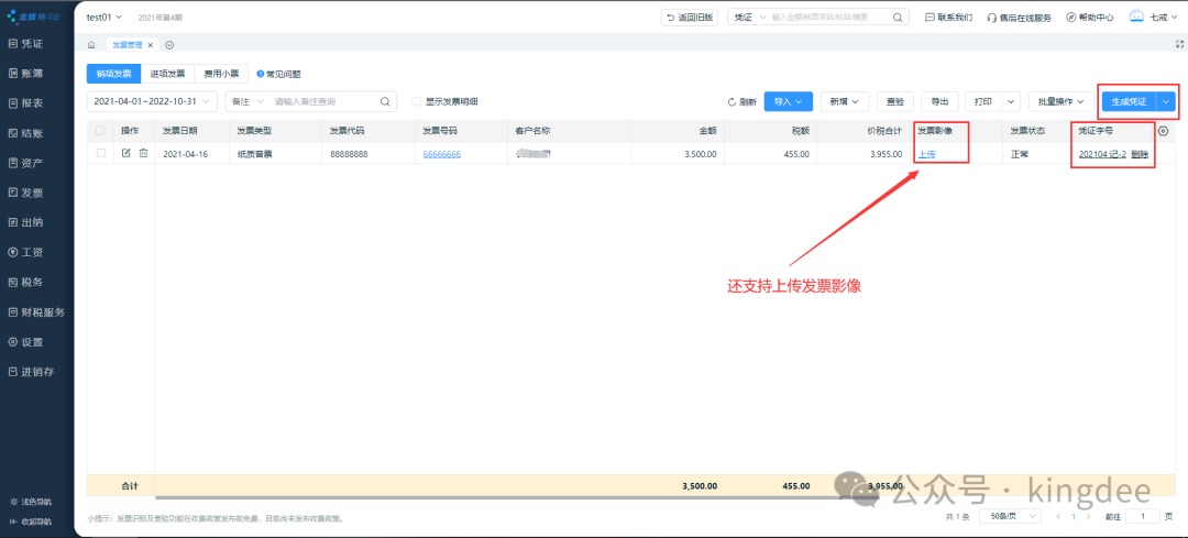 导入或新增好发票数据后,勾选需要生成凭证的发票,点击右上角的【生成凭证】按钮,就可以生成凭证啦