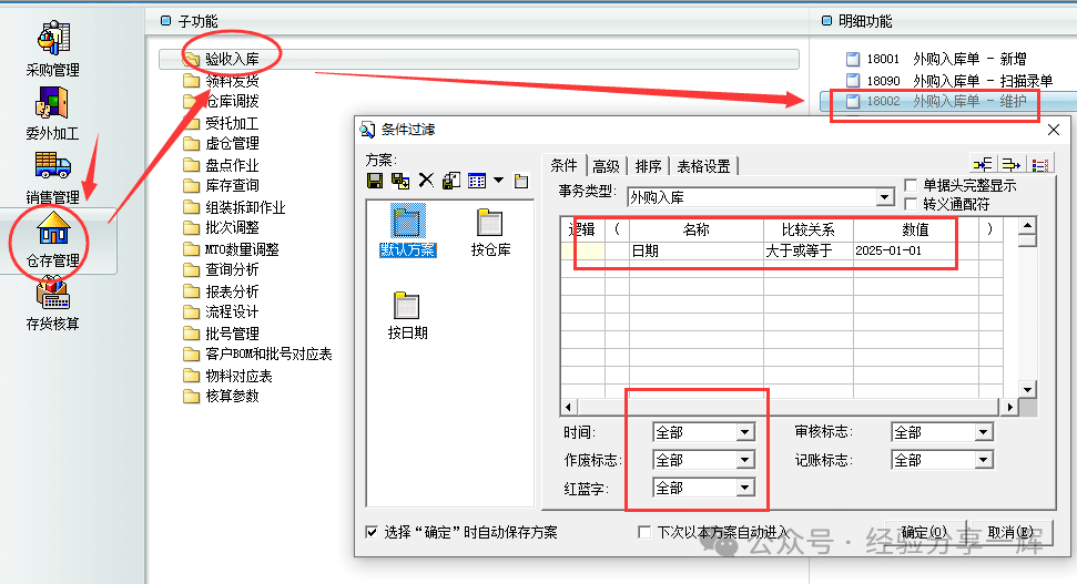 也可以在(仓存管理)——(验收入库)——(外购入库单维护)这里打开,功能是一样的,只是打开路径不同。