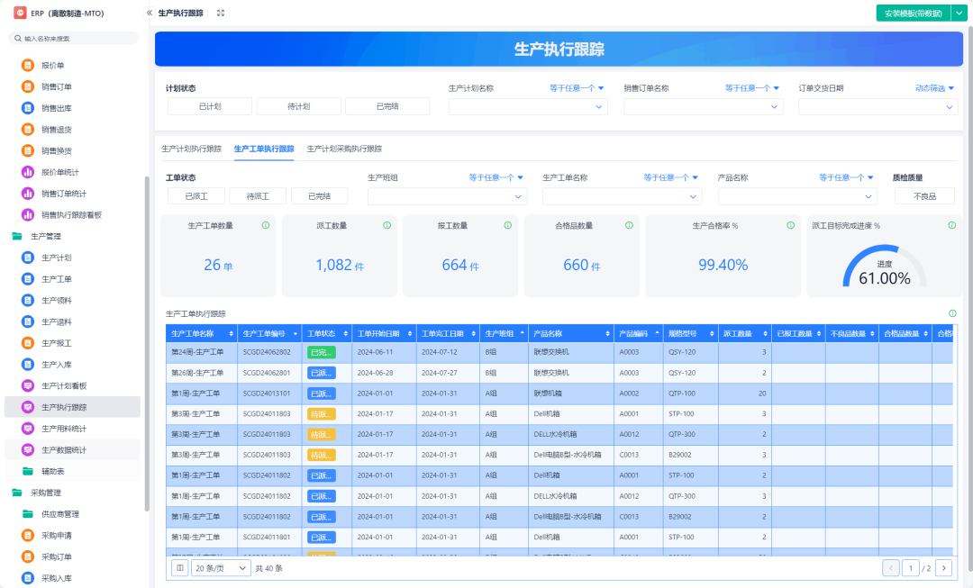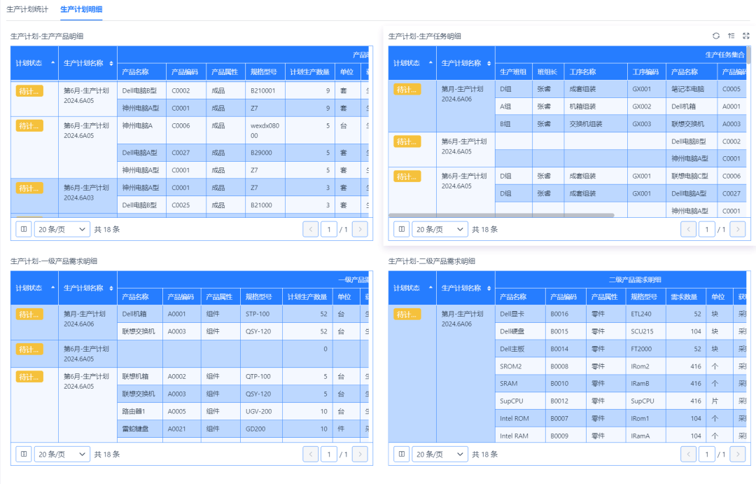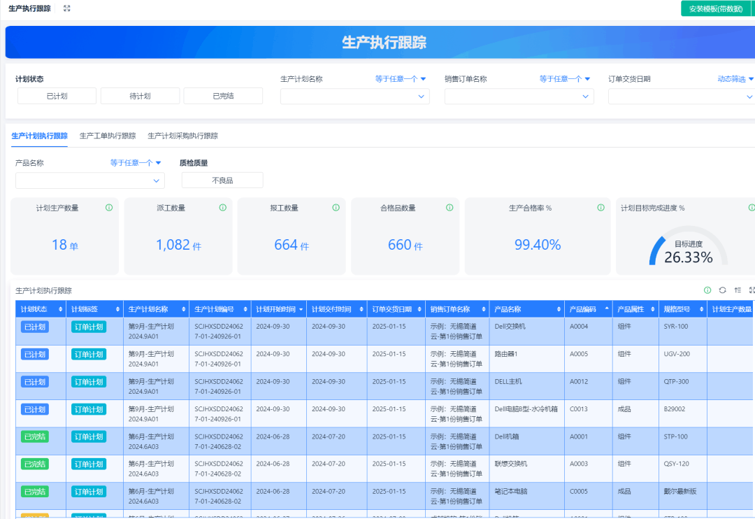 系统一般会自动生成: 请购单计划时间 采购到货时间建议 库存是否够用、提前期是否满足 Step 3:再用 APS 把计划往下排,落实到设备/班次 MPS 定了节奏,MRP 确定了物料,APS 这时候登场,干嘛? 把“产什么”翻译成“怎么产”: 哪个产线?哪台设备?排在哪天?几个小时?谁做? APS 的具体动作包括: 接收 MPS + MRP 的结果(产品量、物料可用时间); 根据设备工艺路径,排出详细作业顺序; 根据设备产能、工人班次、瓶颈工序优化排程; 给每张工单分配起止时间、所需资源。 APS 会根据你当前的库存、供应商交期,动态调整顺序、时间、资源分配,真正做到“有限资源下的最优安排”。 Step 4:现场照计划执行 + 系统反馈实际进度 别以为排完计划就万事大吉了,关键还得看“现场跟不跟”。 这一步的核心是:“计划要执行,偏差要反馈”。 关键动作: 每天根据工单执行进度录入系统:完工数量、是否延迟、物料到齐没; 出现瓶颈(比如设备故障、物料不到),要实时反馈回 ERP 系统; 让计划滚动调整,做到“今天出事,明天补上”。