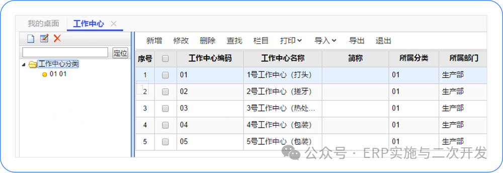 4 工作中心一般是独立完成一道工序的单元,可设置工作中心默认的班组、工人、设备等信息。可设置每小时的产量,产量用于计算工序派工的产能时使用。注意:如果要知道工序派工的能力,则必须要设置工作中心