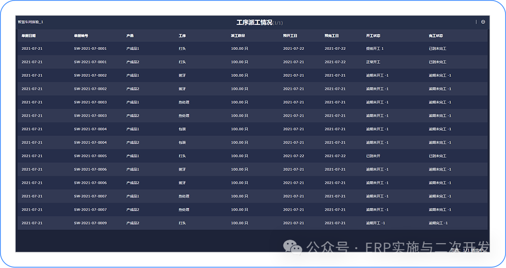 10 报表查询 可以查询派工单报表及的开工、完工情况的看板