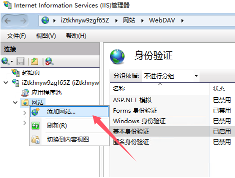 - 选中站点 → 双击 “身份验证” → 启用 “基本身份验证” (需输入用户名密码),禁用“匿名身份验证”。