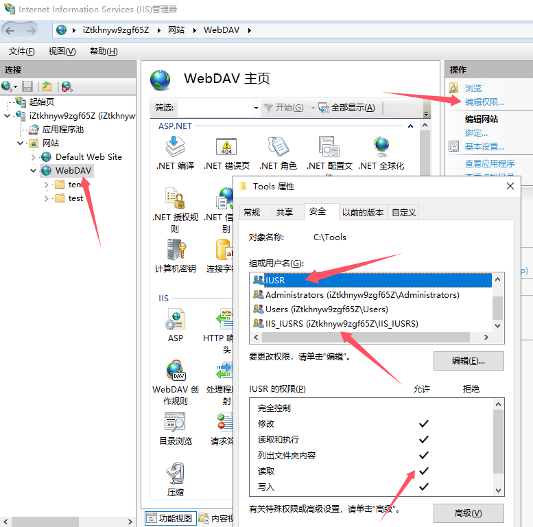 - 右键站点对应的物理文件夹 → “属性” → “安全”选项卡 → 添加 IIS 访问用户(如