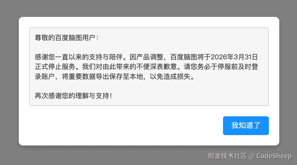 包括这一次「百度脑图」的官宣落幕,作为曾经的用户,说实话,真的觉得挺可惜的。
