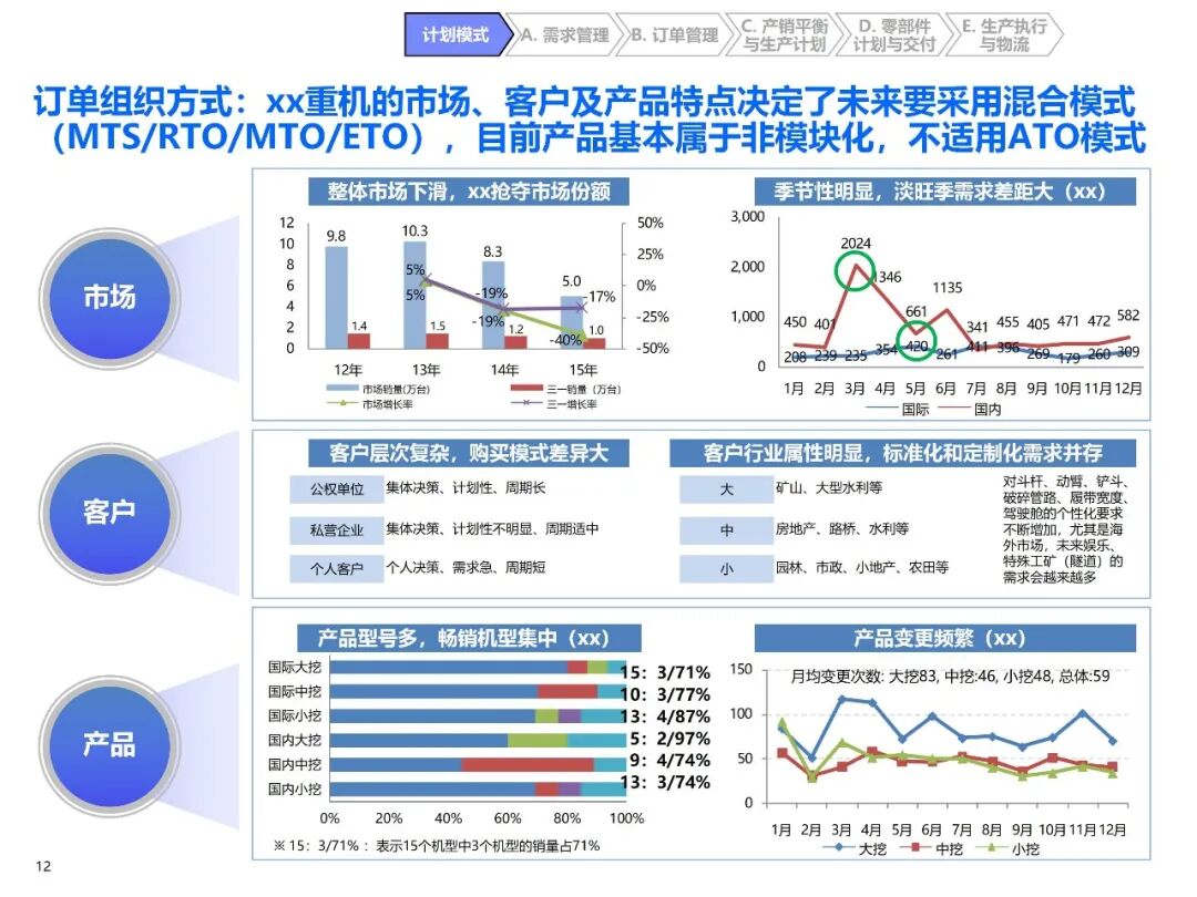 - 订单管理混乱:MTS、MTO 等多种订单组织方式并存,但规则不明确,部分滞销机型仍储备库存,导致超期车积压;