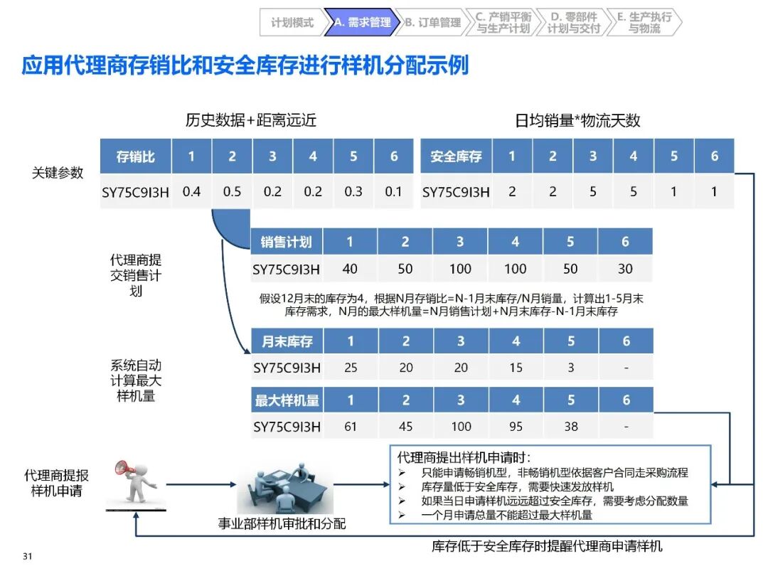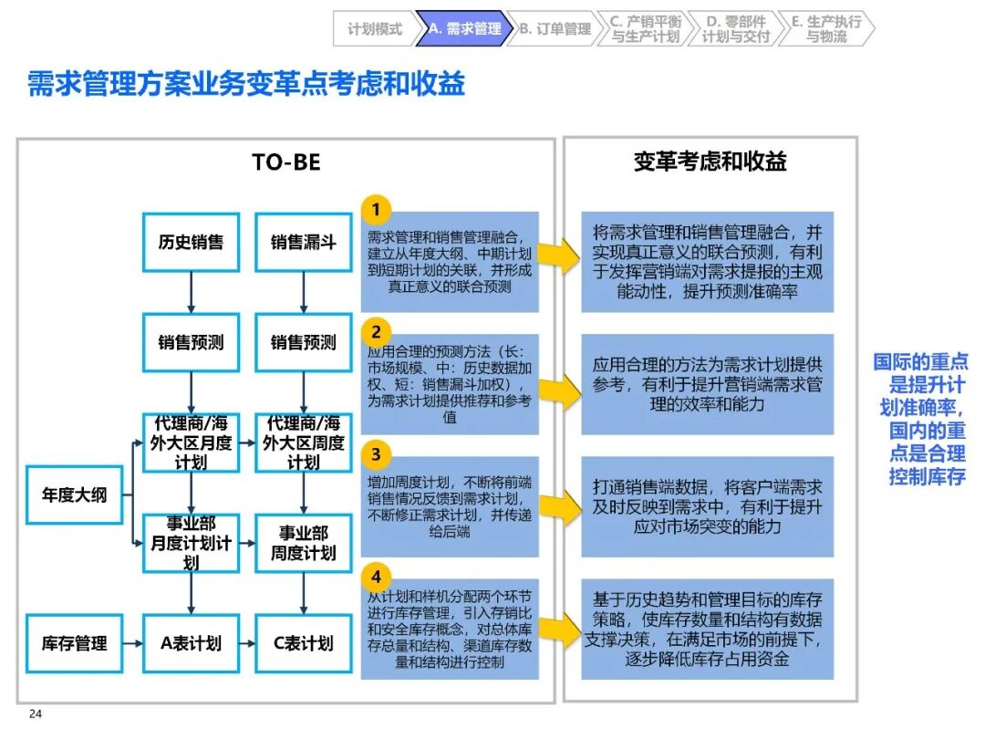 - 精细化库存管控:引入存销比和安全库存概念,分车型、分区域控制库存,国内重点优化库存结构,国际重点提升预测准确率;