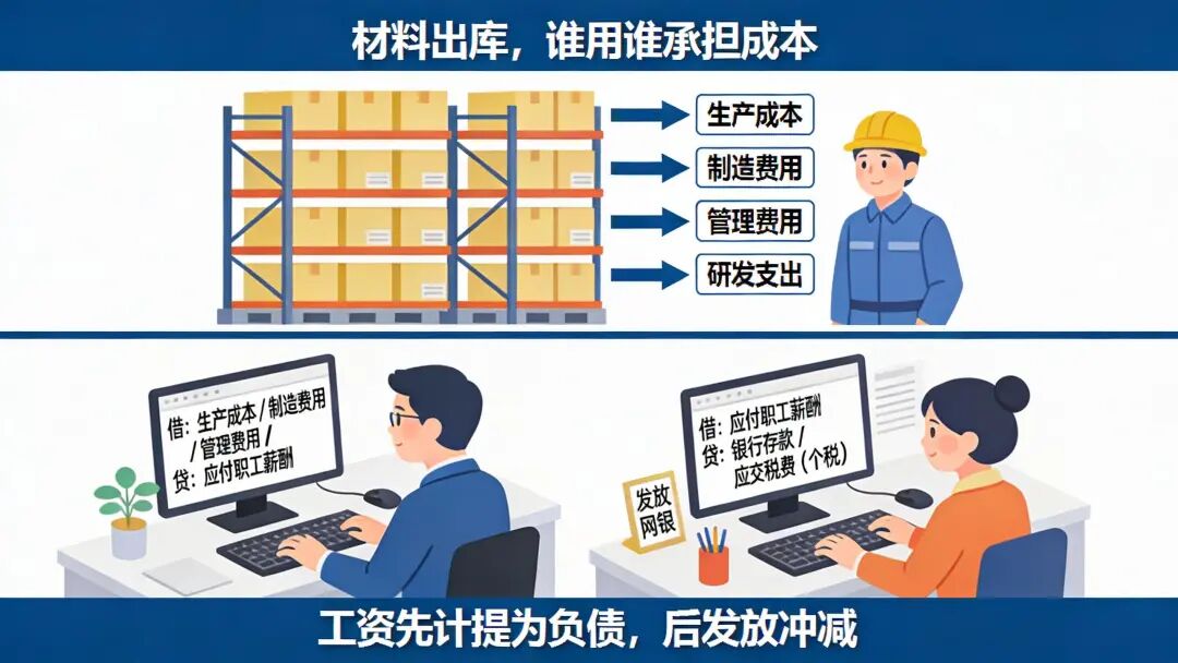 三、材料费用:谁用材料,谁担成本![]() 材料出库时,会计问的第一个问题是:“谁用了?”