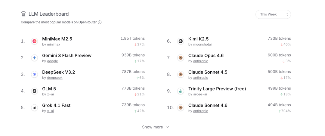 作者:黑色龙虾|深潮 TechFlow 1858 年的夏天,一根铜芯电缆横穿大西洋海底,把伦敦和纽约连在了一起。 这件事的意义从来不在于传输速度,而在于权力结构,谁铺设了海底电缆,谁就能在信息流动中抽水。大英帝国靠着这张全球电报网,把殖民地的情报、棉花的价格、战争的消息都攥在手里。 帝国的强大不仅是有舰队,还有那根电缆。 一百六十多年后,这个逻辑正在以一种意想不到的方式重演。 2026 年,中国大模型正在悄悄吃掉全球开发者市场。OpenRouter 最新数据显示,平台前十模型的 Token 消耗中,中国模型独占 61%,前三名清一色来自中国。旧金山、柏林、新加坡的开发者每天发出的 API 请求,正穿越太平洋海底光缆抵达中国数据中心,算力在那里消耗,电力在那里流动,结果传回来。 电力从未离开中国电网,但它的价值通过 Token 完成了跨境交付。 AI 模型大迁徙2026 年 2 月 24 日,OpenRouter 发布了一份周度数据:平台前十模型的总 Token 消耗约 8.7 万亿,中国模型独占 5.3 万亿,占比 61%。MiniMax M2.5 以 2.45 万亿 Token 空降榜首,Kimi K2.5、智谱 GLM-5 紧随其后,前三名清一色来自中国。
