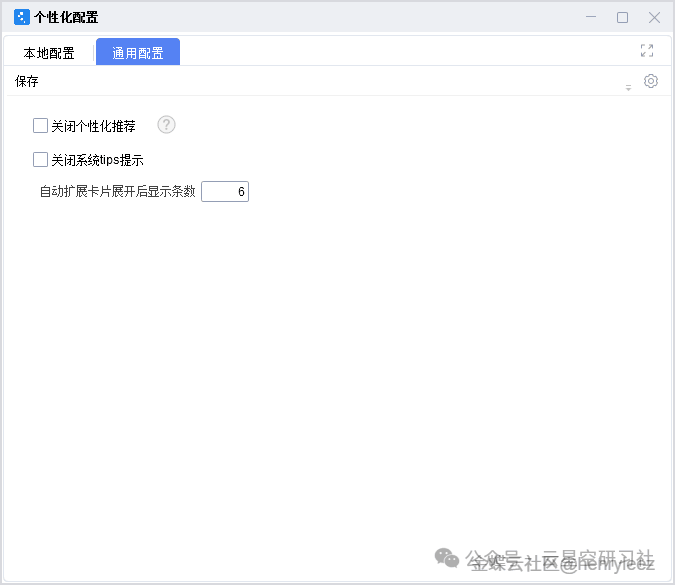 使用个性化配置,配置个人用户使用的参数,使得系统的操作与体验更符合个别用户的操作习惯,提高操作效率。本地配置页签见图1,通用配置页签见图2:图1图2