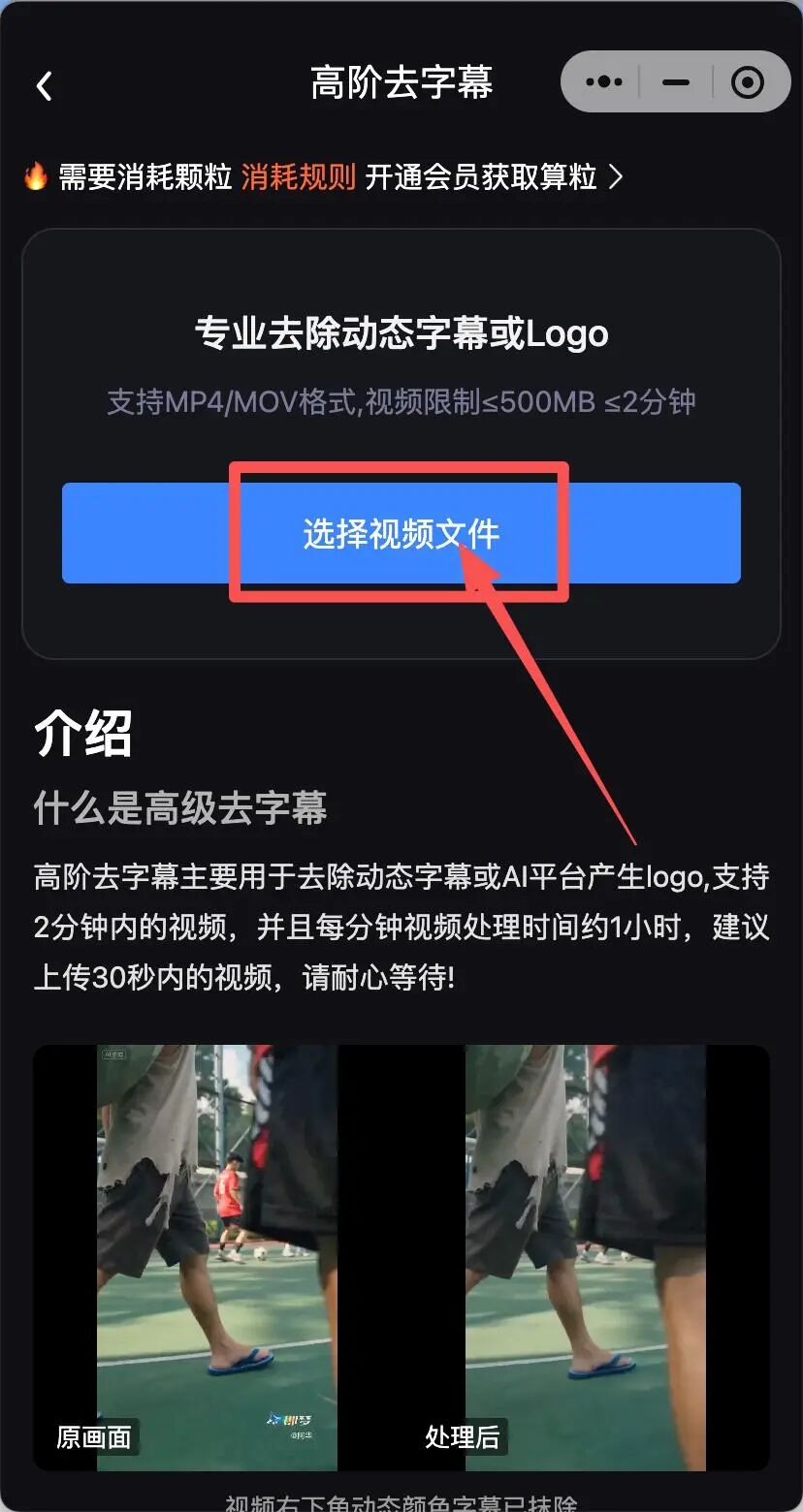 :打开软件后,直接寻找“高阶去字幕”或“视频去水印”功能入口。这个功能不仅能去字幕,也能处理动态Logo。