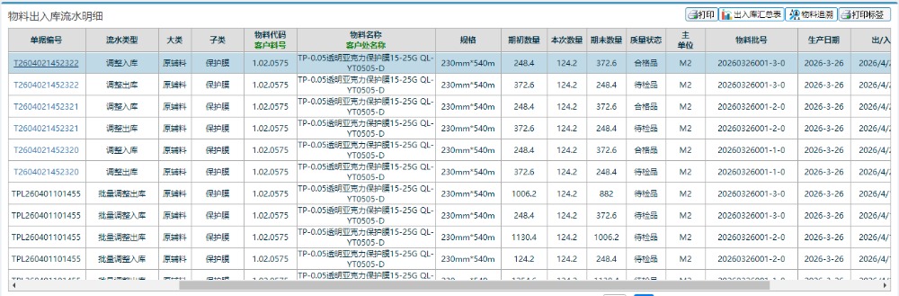 根据查询得到的物料流水类型以及状态进行确认。​