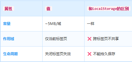 SessionStorage 和 LocalStorage 几乎一样,唯一的区别是——关闭标签页就没了。