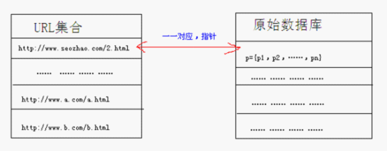 2.消除重复与转载网页。 每个搜索引擎其识别重复页面的算法均不相同,但是其中Mr.Zhao认为,如果将消重算法理解为由100个元素组成,那么所有的搜索引擎恐怕其80个元素都是完全一样的。而另外20个元素,则是根据不同的搜索引擎针对seo的态度不同,而专门设立的对应策略。本文仅对搜索引擎大体流程进行初步讲解,具体数学模型不多做讲解。 3.重要信息分析。 在进行代码除噪的过程中,搜索引擎并非简单的将其去除掉而已,而是充分利用网页代码(例如H标签、strong标签)、关键词密度、内链锚文本等方式分析出此网页中最重要的词组。 4.网页重要度分析。 通过指向该网页的外链锚文本所传递的权重数值,来为此网页确定一个权重数值,同时结合上述的“重要信息分析”,从而确立此网页的关键词集合p中每一个关键词所具备的排名系数。 5.倒排文件。 正如上文所说,用户在查询时所得到的查询结果并非是及时的,而是在搜索引擎的缓存区已经大体排好的,当然搜索引擎不会未卜先知,他不会知道用户会查询哪些关键词,但是他可以建立一个关键词词库,而当其处理用户查询请求的时候,会将其请求按照词库进行分词。那么这样下来,搜索引擎就可以在用户产生查询行为之前,将词库中的每一个关键词其对应的URL排名先行计算好,这样就大大节省了处理查询的时间了。 简单来说,搜索引擎用控制器来控制蜘蛛爬取,然后将URL集与原始数据库进行保存,保存之后再用索引器控制每个关键词与URL之间的对应关系,并将其保存在索引数据库中。 下面我们来举例说明。 假若http://www.seozhao.com/2.html页面被切词成p={p1,p2,p3,……,pn},则其在索引数据库中由下图方式体现。