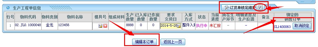 情况三:计划(pmc)已将单据排产,相关人员发现单据有错误,需要修改订单。 需通知计划(pmc)对单据进行取消锁定的编辑操作,如图所示: 计划(Pmc)在取消锁定操作后,销售单据回到情况二,按照上述指引即可完成更改。