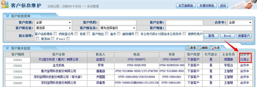 疑问: 原因:启用了新增客户审核功能,启用此功能新增的客户的显示状态会显示不合作,如图: 解决办法:不启用了新增客户审核功能即可,操作如下图示: 点晴模切ERP更多信息:https://moqie.clicksun.cn,联系电话:4001861886 该文章在 2014/9/13 15:44:49 编辑过 |