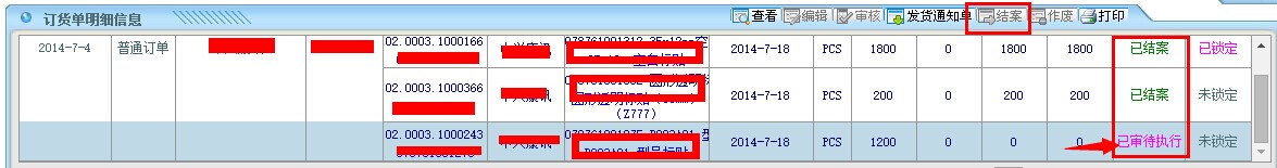 一张销售单上面存在多个物料,其中一部分按正常的排产入库发货结案,还剩下部分物料,由于客观的原因不再进行排产发货了。那么这张单如何进行结案呢? 以下图这种情况为例: 上图就是典型的例子,直接想结案,发现结案按钮是灰色的。 结案销售单,必须保证销售单所对应的所有生产工单都需要解锁,且没有正在进行的送货单。 解决方法: 1、找到这张单对应的生产工单,如下图所示; 2、点击查看按钮,对工单进行解锁操作; 3、返回到需要结案的销售单,这是结案按钮正常亮起,可以进行结案操作。 点晴模切ERP更多信息:https://moqie.clicksun.cn,联系电话:4001861886 该文章在 2016/2/15 10:07:35 编辑过 |