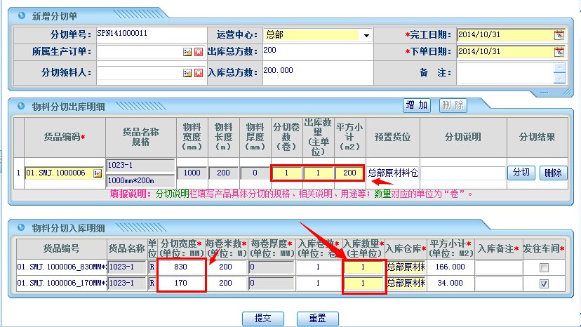 操作步骤:仓库管理——物料分切管理——新增分切通知单;如下图所示: