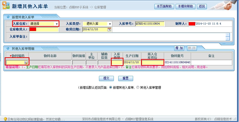 点晴模切ERP仓库管理—仓库入库管理之新增其他入库管理操作