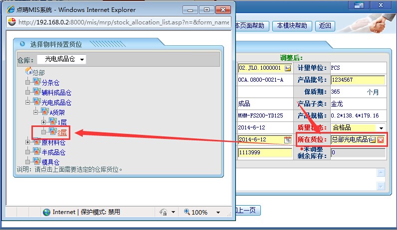 点击“所在货位”,进入如下图所示页面: