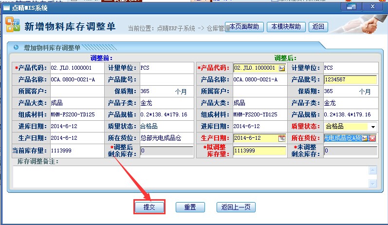 选择正确的货位后点击“提交”即可。