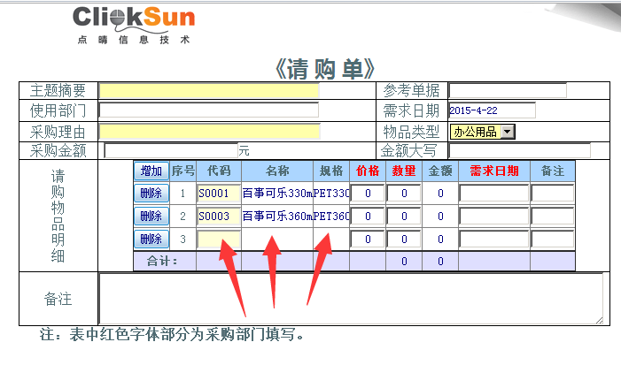 先看一个工作流自定义数据源在采购申请单的应用范例: