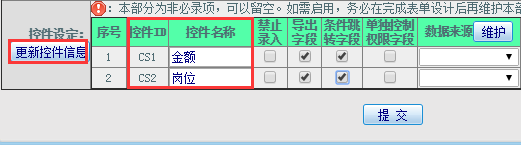 然后点击页面下方的“控件设定”,勾选需要设置为条件跳转的字段,效果如下图所示(若发现不一样,需下载最新升级包: