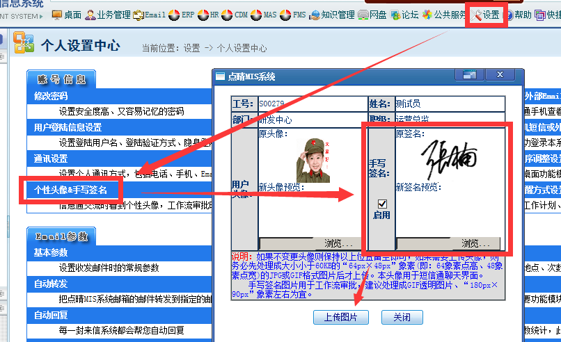 先手工在白纸上签上自己的姓名,然后用扫描仪或手机将签名截取下来,将这个手写签名截图上传到以下位置待用: ![]() 然后在工作流表单模板的审核位置插入审核人,以后就会看到审核人自动变成这个手写签名了: ![]() 以后审批时,就会看到上面的$auditor$会变成手写签名了: ![]() 该文章在 2019/1/9 18:56:41 编辑过 |