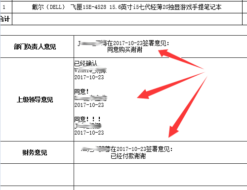 对于有多人并行会审、所有上级主管审核、或条件跳转审核等特殊需求的审核节点,必须使用“完整审核信息”,只能将审核人信息放在同一个位置,无法拆分显示,此时应该将此节点改为:审核人意见或上级领导意见之类,效果如下: