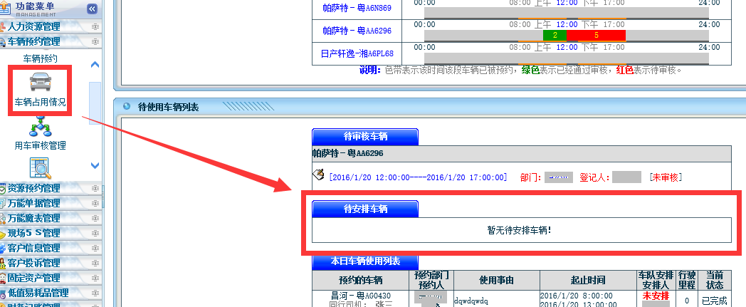 点晴永久免费OA车辆预约管理模块使用说明